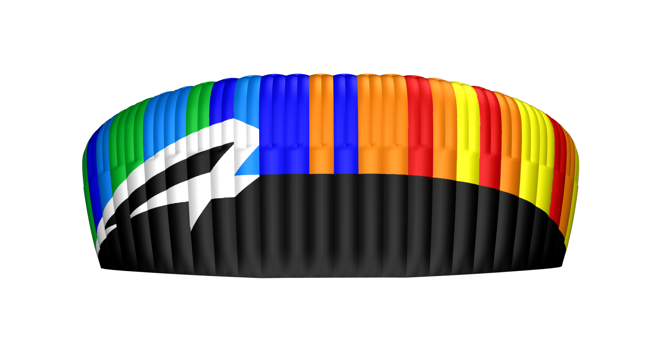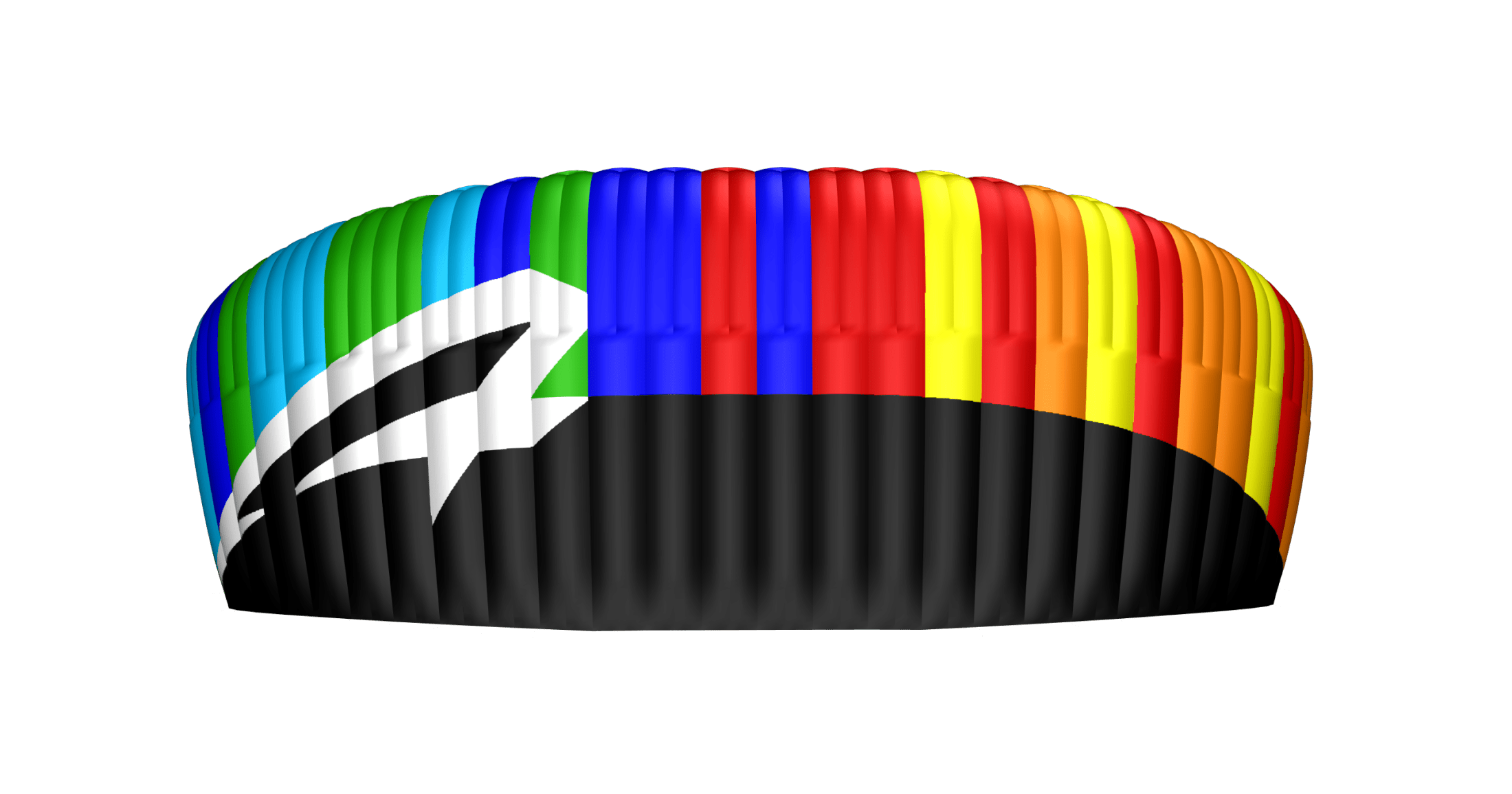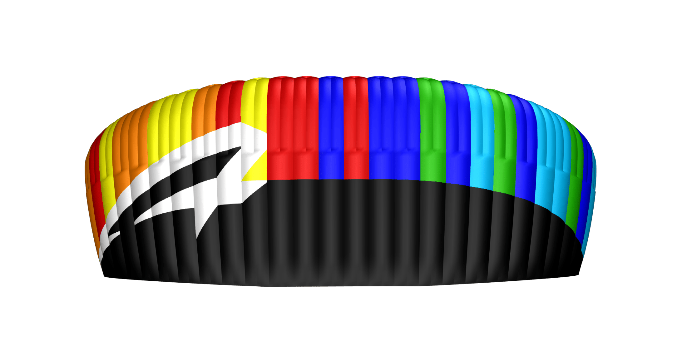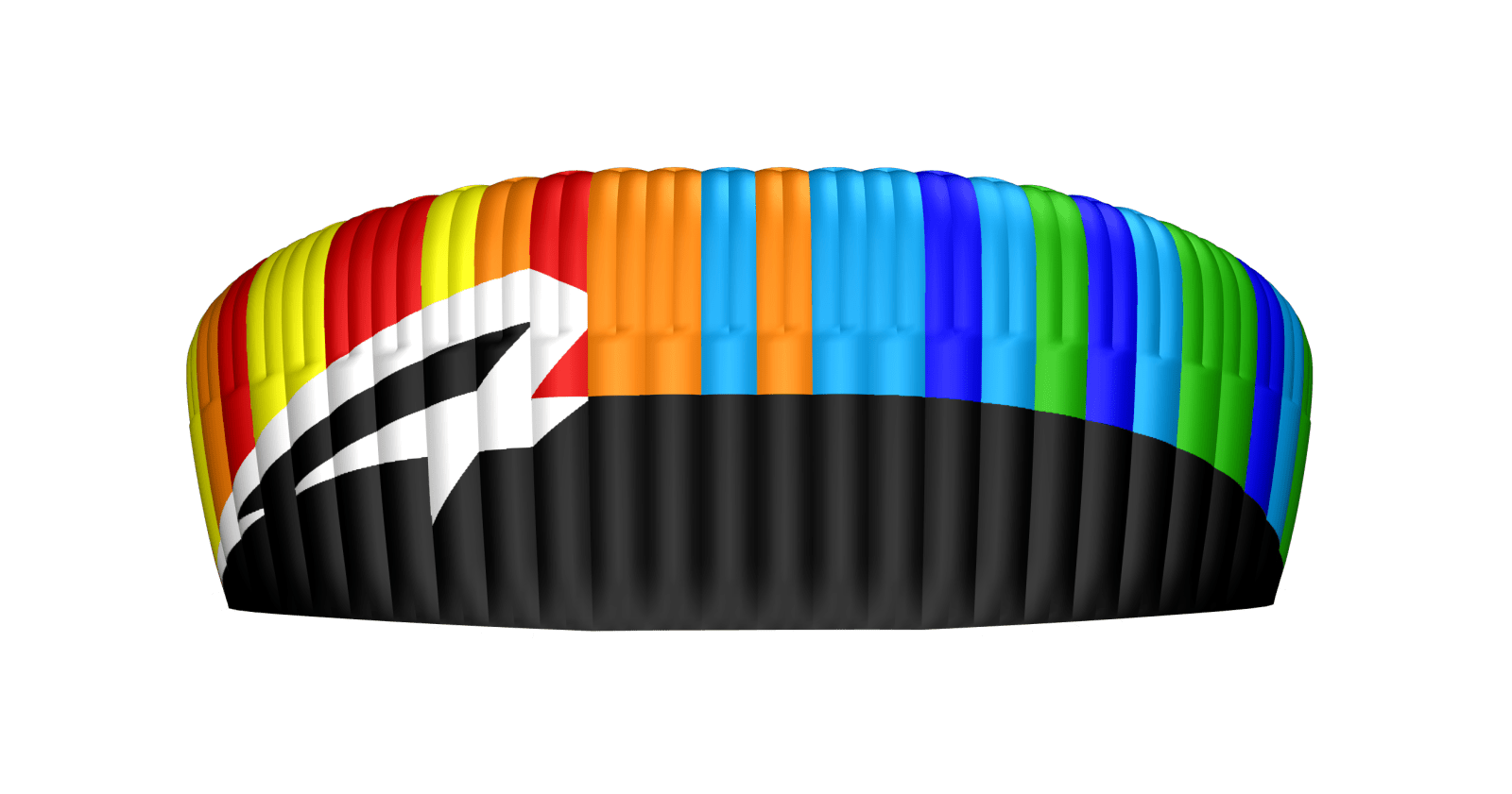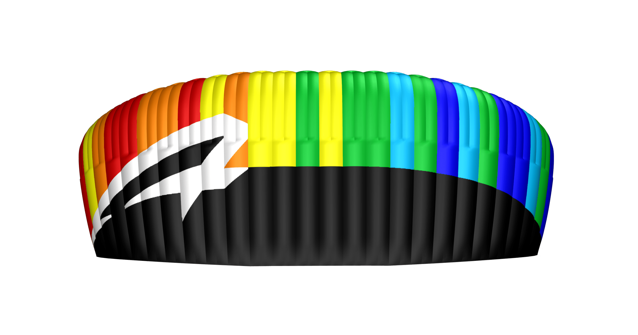 In the image on the left speedribs shown are located on the trailing edge at the middle of each cell, reducing billowing and “Sharpening” the tail for cleaner, more aerodynamic flow behavior.